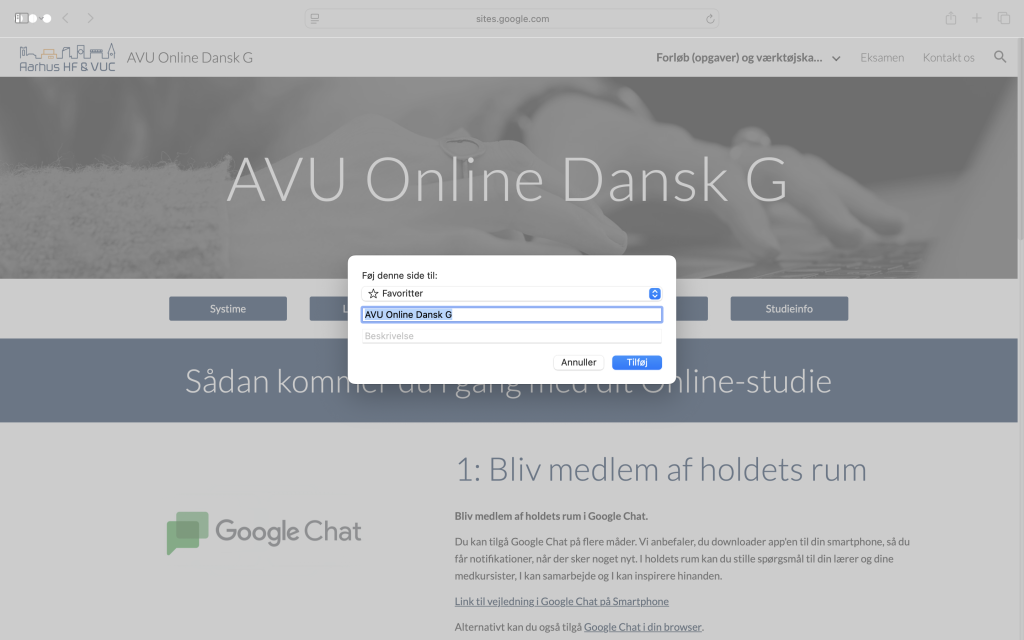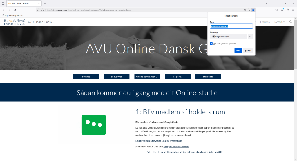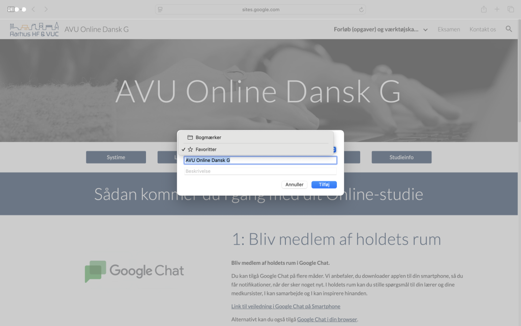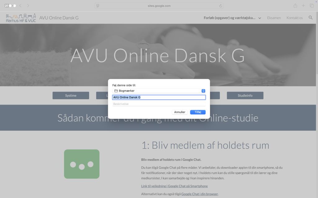 Næst skal du bogmærke siden så du har nem adgang til næste gang du besøger siden