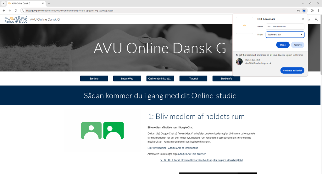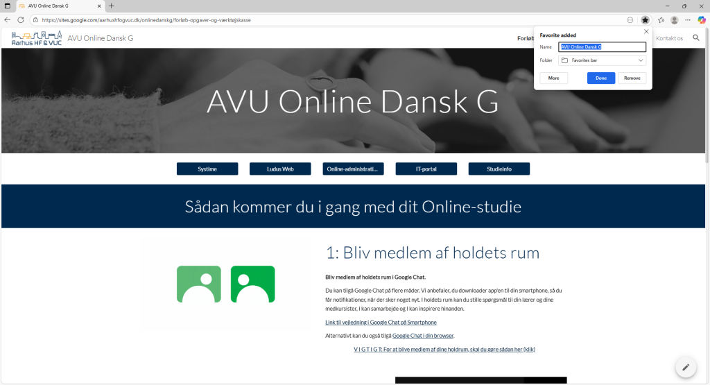 Hvis du går på online fag så er vejledningen til ad finde din holdside lidt anderledes, du skal kigge på trin 1b