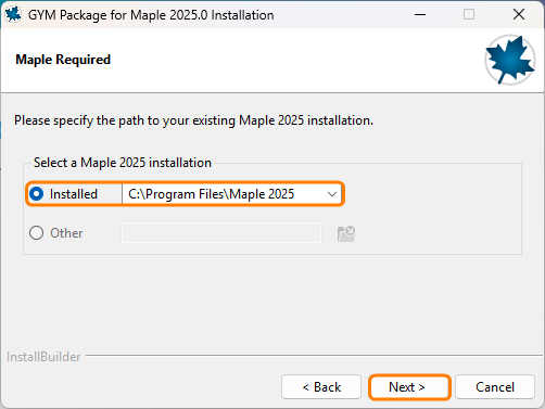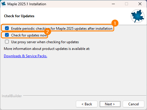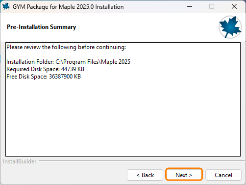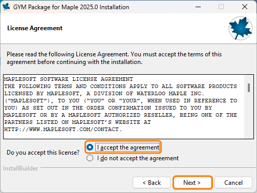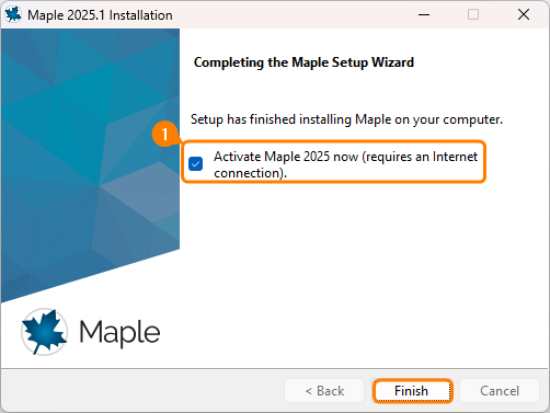 - Når installationen er færdig så set et flueben ved “Activate Maple 2025”